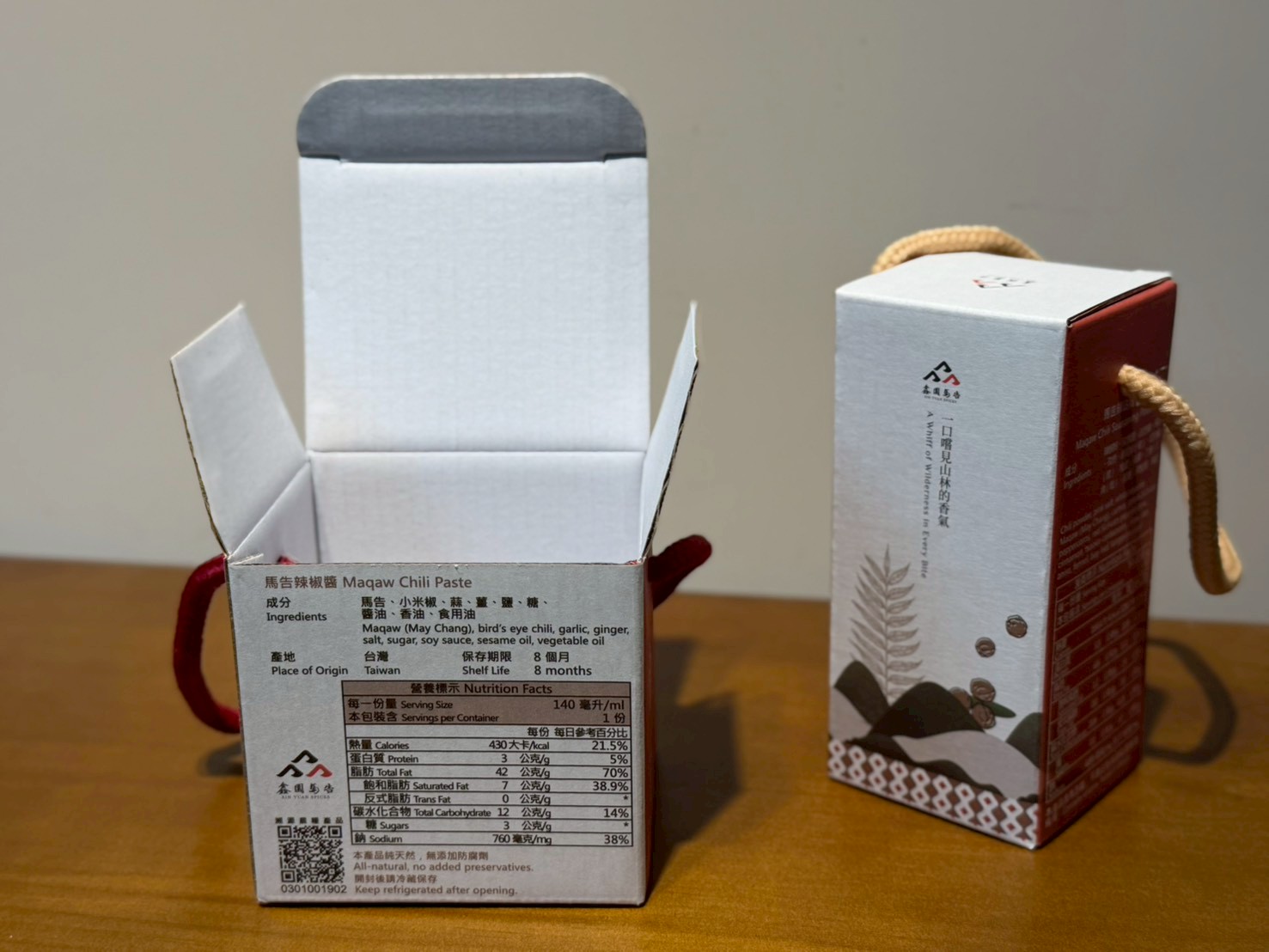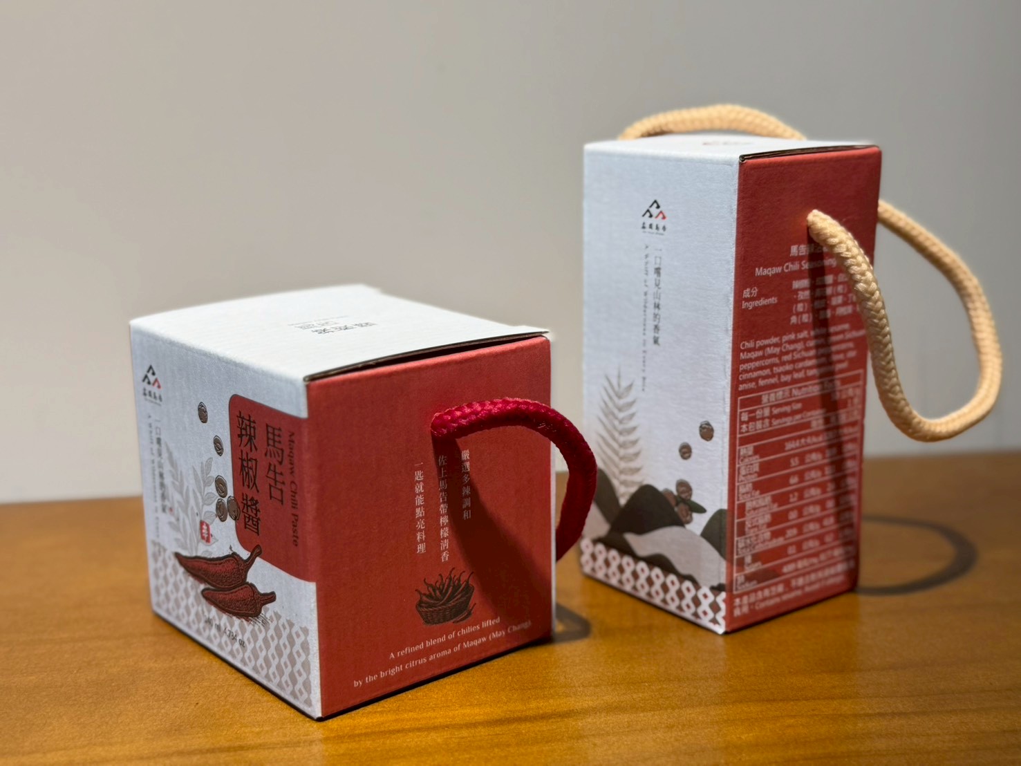 📍南島之眼 辣椒罐紙盒 December 26,2025 分享 facebook LINE twitter sina 紙張|白牛皮180gsm+裱貼白E浪120/160gsm 印刷|平版CMYK印刷 工法|軋型+糊盒 ————— 箱編想說 插底式結構穩固耐用,搭配提繩設計,拿取方便又有質感。 彩印細節表現豐富,讓品牌視覺更加完整。 ————— 如果您想詢價,請加入我們的官方LINE,小編們會在線上熱情為您服務哦! 取得報價LINE搜尋「@shbox8」