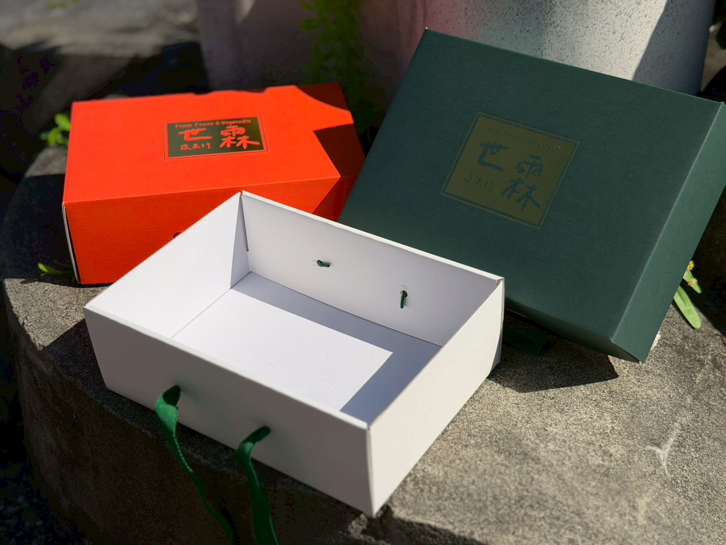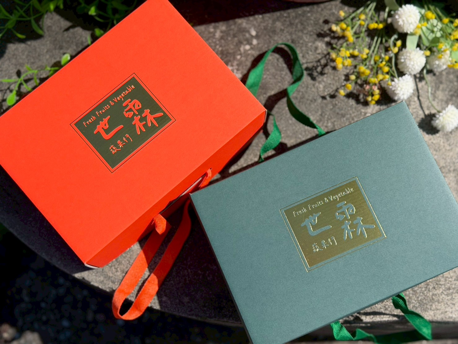 📍世霖蔬果行 水果上下蓋禮盒 February 05,2026 分享 facebook LINE twitter sina 紙張|綠-瑞典棉卡200gsm+裱貼白E浪130/160gsm 橘-瑞典棉卡200gsm+裱貼白E浪130/160gsm 印刷|兩款各平版1特別色印刷 工法|綠-燙亮金/橘-燙玫瑰金 ————— 箱編想說 模造紙張的纖維手感,觸感自然,視覺與手感都很耐看 正面LOGO以燙金點綴,為包裝留下剛剛好的精緻感 ————— 如果您想詢價,請加入我們的官方LINE,小編們會在線上熱情為您服務哦! 取得報價LINE搜尋「@shbox8