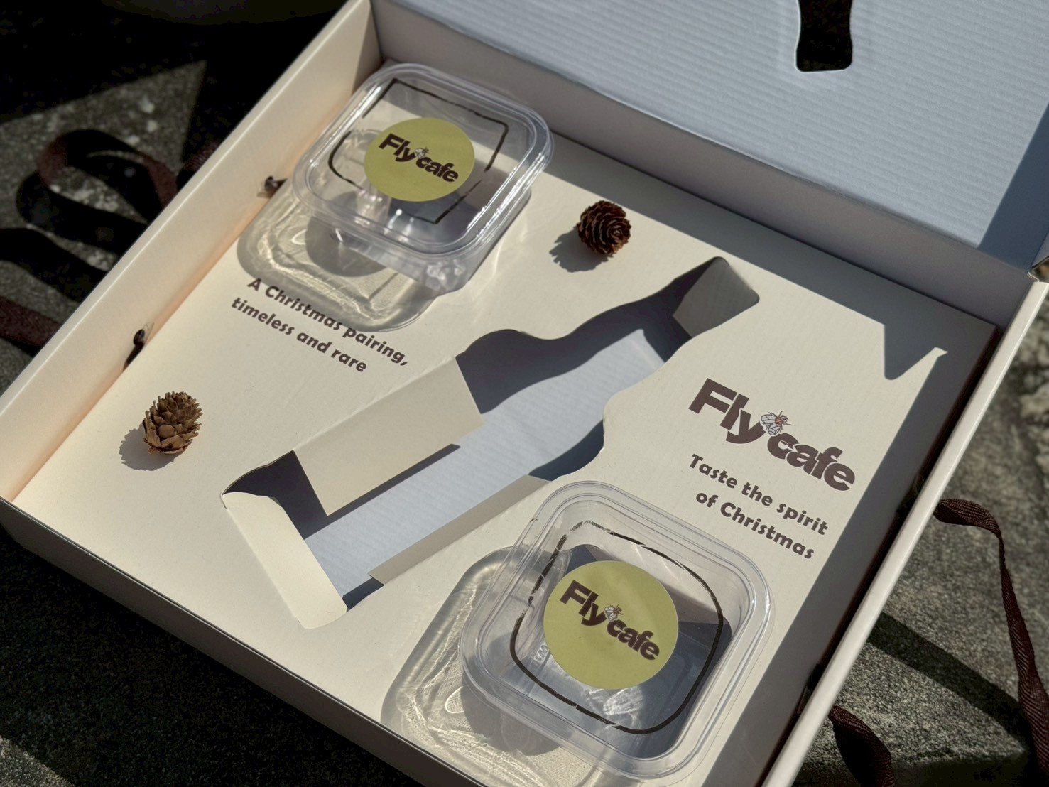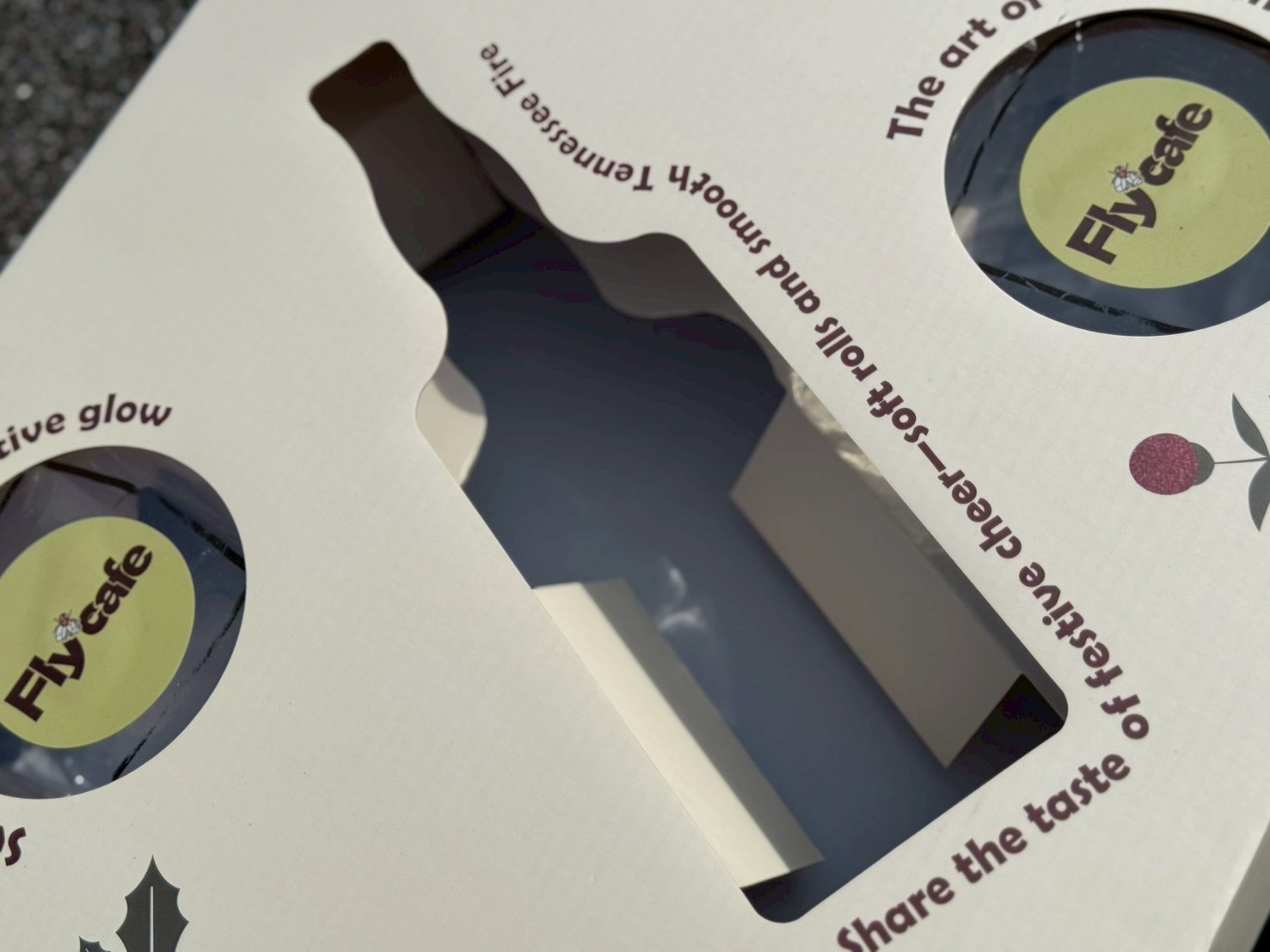 📍蒼蠅咖啡 肉桂禮盒 March 12,2026 分享 facebook LINE twitter sina ▪ 紙張|白卡235gsm+裱貼白E浪140/160gsm ▪ 印刷|平板CMYK印刷 ▪ 工法|上霧膜 ————— 🔸箱編想說 正面開窗設計,讓內容物一眼可見,提升整體質感與吸引力👀 中央以酒瓶造型挖空,巧妙呼應節慶氛圍 兩側圓形開窗增加一點小巧思 增添故事感與趣味性~ ————— 🔹如果您想詢價,請加入我們的官方LINE,小編們會在線上熱情為您服務哦!😊 🙋♂️取得報價➡️LINE搜尋「@shbox8」