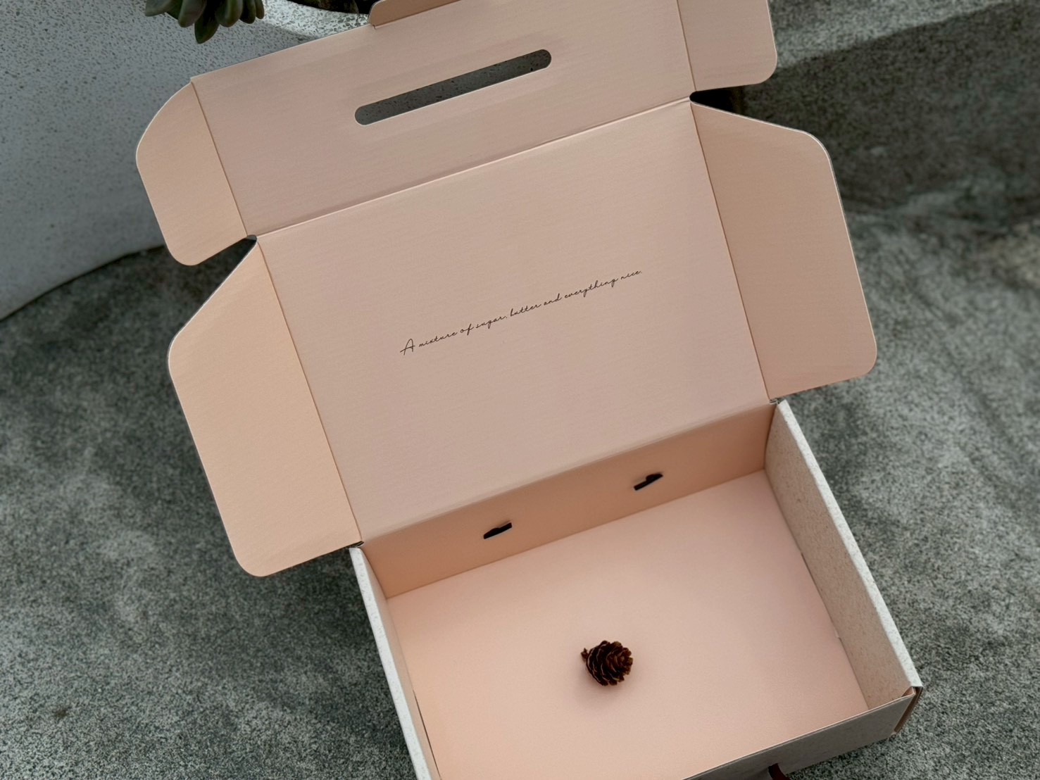 ▪ 紙張|雙面皆使用白卡210gsm+三明治裱貼E浪100/115gsm