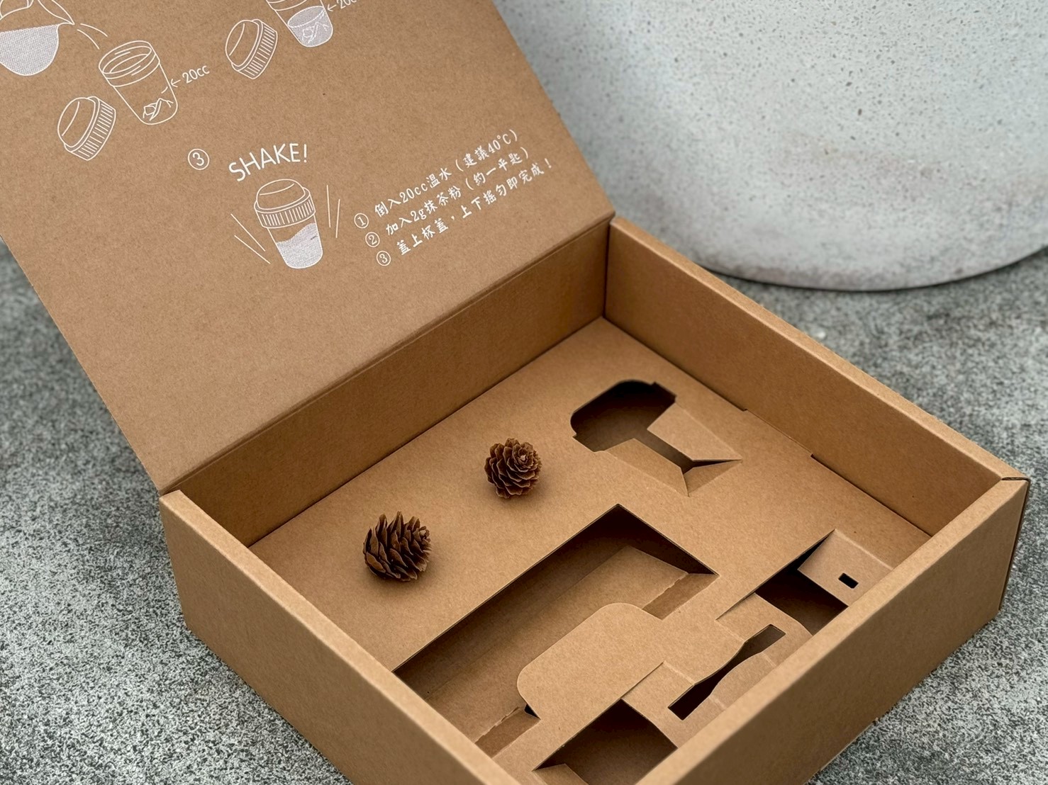 盒蓋內側直接把抹茶沖泡教學印在上面