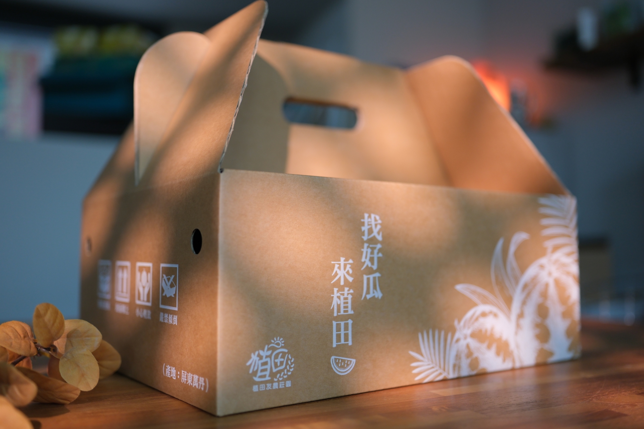 📍植田 插底手提盒 April 27,2026 分享 facebook LINE twitter sina ▪ 紙張|仿進口瓦楞紙B浪175/180/175gsm ▪ 印刷|柔版印刷-白色 ▪ 工法|視覺設計 ————— 🔸箱編想說 捨棄繁瑣膠帶,一體成型提把結構讓小西瓜也能優雅拎著走✨ 以柔印白墨在瓦楞紙上勾勒出清新的西瓜 打破農產品包裝的傳統印象❤️ 讓這份包裝不只是容器,更是現摘質感的延伸~ ————— 🔹如果您想詢價,請加入我們的官方LINE,小編們會在線上熱情為您服務哦!😊 🙋♂️取得報價➡️LINE搜尋「@shbox8」